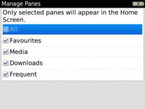 Thanks to the screenshot above, we now also know that BlackBerry 6.1 will include a Manage Panes options screen. If you weren’t a fan of having to purposely or accidentally swipe through the All, Favorites, Media, Downloads and Frequent panes, you will soon be able to choose which of these appear in the Home Screen. A small addition to the OS but it will definitely be helpful.
