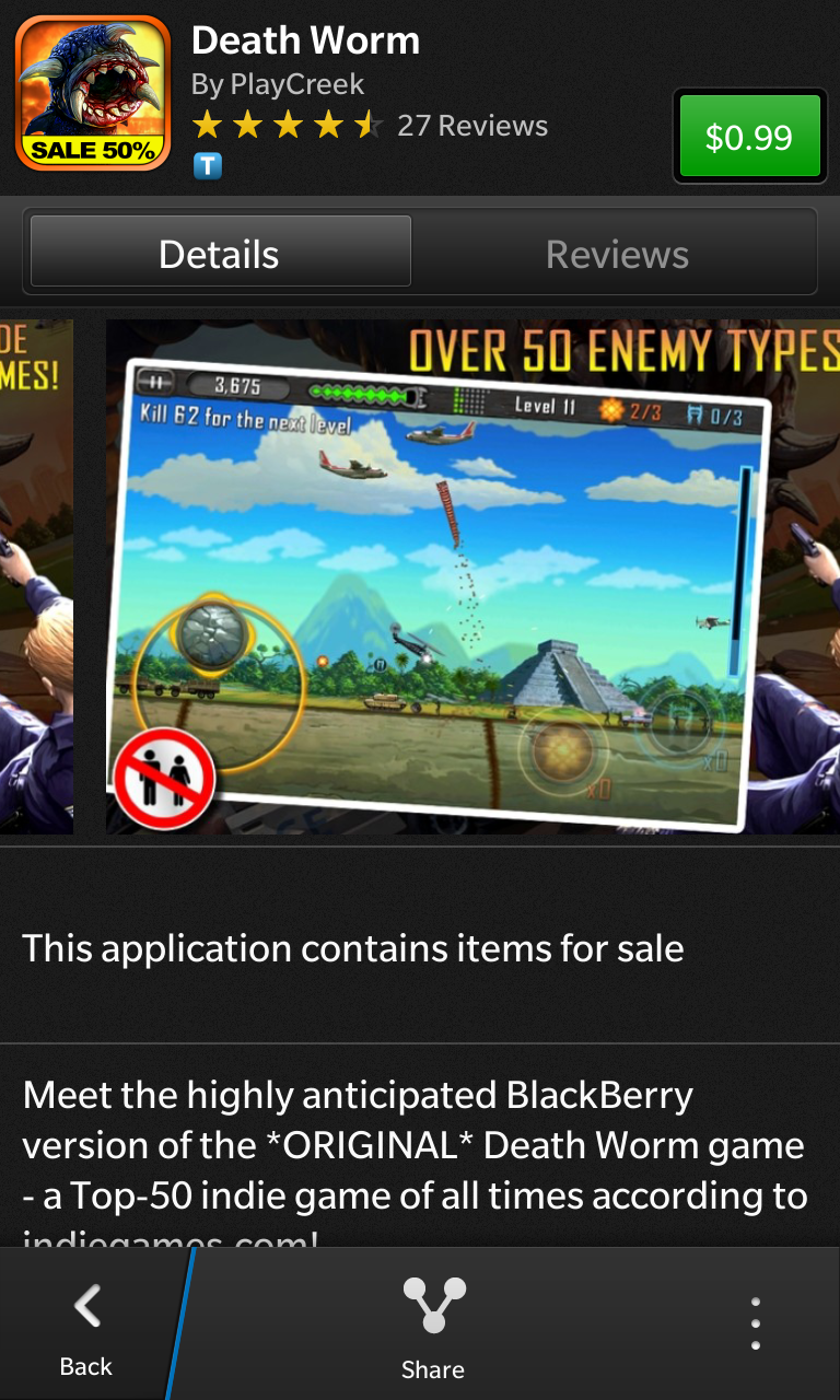 Unfortunately, the sale banner and promotion is currently active in Europe only. The games are still on sale here in the States, you’ll just have to hunt them down yourself as they’re not neatly categorized. There may even be more than what’s included in the list below, you’ll just have to load up your BB10 device and hit up Blackberry World to find out what else is there. Here are the games that we know are currently on sale: